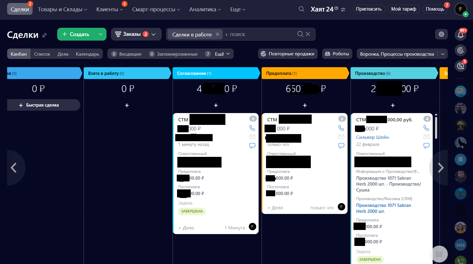 ❌ Сделки оформлялись вручную, статусы заказов уточнялись "вживую" — от сотрудников производственных цехов.
